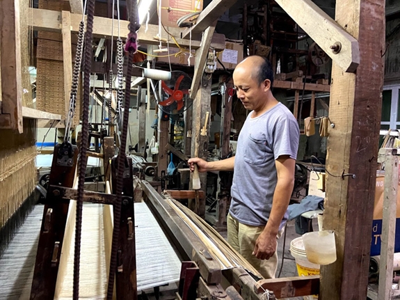 Anh Lê Đăng Toản quyết tâm giữ lấy nghề dệt lụa truyền thống. Ảnh: MINH BẮC. |