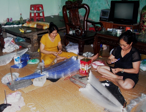 Người dân thôn Trần Phú đan lưới, vó.