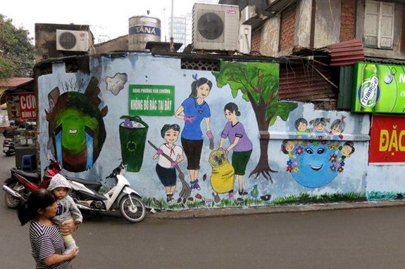 Mỗi địa phương có những cách khác nhau để xóa điểm chân rác, nơi nào quỹ đất rộng rãi thì làm đường hoa, phố hoa, còn những địa bàn nội đô như quận Đống Đa, diện tích hẹp, lại nhiều chợ và trường học, các cơ quan công sở thì vẽ tranh tường là giải pháp hiệu quả, là cách để gửi đến những thông điệp ý nghĩa.