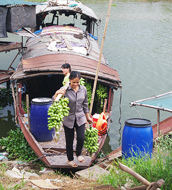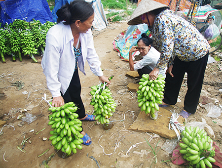 QĐND - Nói tới vùng bãi ven sông Hồng ở nội thành Hà Nội, người ta thường nhớ tới chợ chuối ở sát bờ sông, thuộc địa phận phường Chương Dương (quận Hoàn Kiếm). Chẳng ai biết chính xác chợ chuối này có tự khi nào, nhưng trước đây chợ đông hơn bây giờ, có đến vài chục chiếc thuyền đậu san sát nhau bán chuối. Nay do nước sông cạn, thuyền không vào được, phải đậu phía ngoài xa. Chuối được lái buôn gom từ Yên Bái, Phú Thọ, Lào Cai... tập kết về để cung cấp cho địa bàn Hà Nội. Dịp lễ, Tết là thời điểm chợ đông nhất. Công việc buôn bán, gánh gồng tại chợ bãi này chỉ toàn chị em phụ nữ đảm nhiệm.