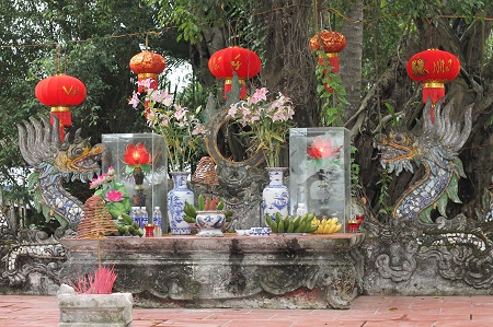 | Nơi thờ thần tài chợ Vạng luôn đỏ hương và được bày biện chu đáo vào những ngày phiên. Đồ thờ cúng cũng giản dị và là những sản phẩm nông nghiệp của người dân trong vùng... |
