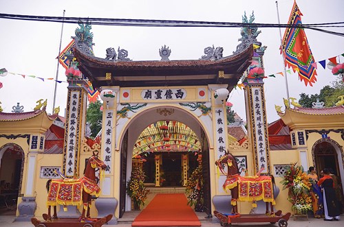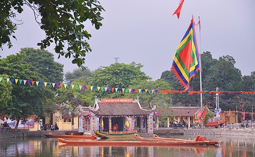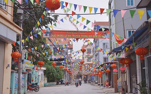 Đèn lồng đỏ, cờ hội phủ khắp đường làng, thôn xóm. |