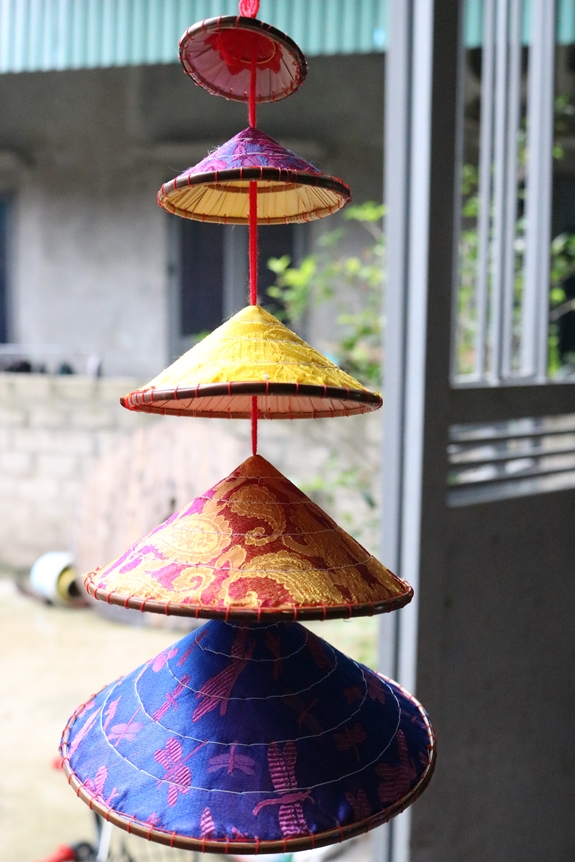 Những chiếc nón lụa tí hon là vật trang trí được nhiều khách du lịch ưa thích. |