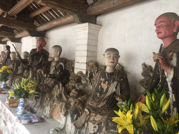 Các bức tượng tròn cổ trong chùa Hải Giác. |