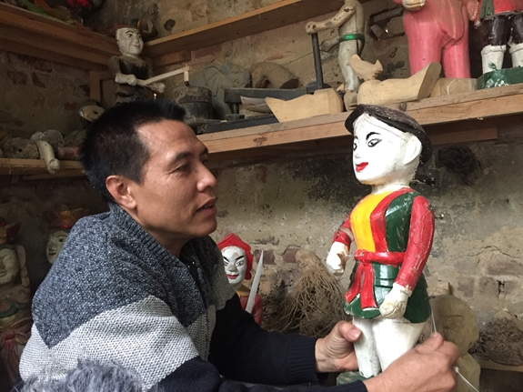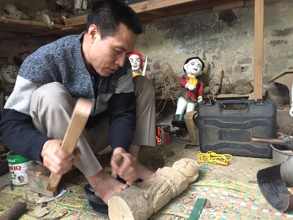 Anh Nguyễn Văn Phi đục đẽo tạo dáng cho con rối. |